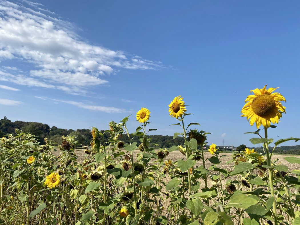 Wir sind einen kleinen Abschnitt des RuhrtalRadwegs gefahren. Unsere Fahrradtour entlang der Ruhr begann an der Henrichshütte Hattingen und führte über Witten zum Kemnader See. Wer noch ein Fahrrad braucht: An der Henrichshütte befindet sich eine von 19 Mietstationen von RevierRad. Wer hier startet, sollte unbedingt die Gelegenheit nutzen, diese tolle Location genauer zu erkunden. Darüber, was Ihr an der Henrichshütte erleben könnt, habe ich in meinem Artikel Ruhrgebiet in Love Teil 2 – Meine Tipps (nicht nur) für den Valentinstag im Ennepe-Ruhr-Kreis berichtet. Vor allem landschaftlich hat mir die Route gut gefallen, denn sie ermöglichte immer wieder schöne Ausblicke auf die Ruhr. Wir passierten Felder mit blühenden Sonnenblumen und Wiesen mit weidenden Schafen.
