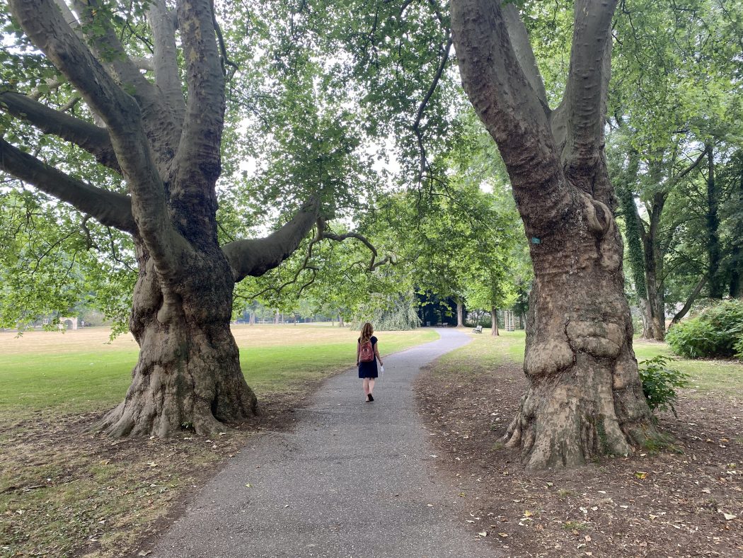 Aber nicht nur die historische Altstadt von Werden ist sehenswert: Auch ein Spaziergang zur Brehminsel lohnt sich. Über eine kleine Brücke gelangt man auf den sogenannten Brehm – Werdens Stadtpark, der den Einwohnern als Erholungsstätte dient. Dort gibt es einen Spielplatz mit einer Seilbahn, einem Bolzplatz, viel Platz zum Picknicken und dem Ruhruferrundweg zum Spazierengehen. Mich hat vor allem der alte Baumbestand beeindruckt, die Platanen sind teilweise bis zu 200 Jahre alt. Die Geschichte, warum sie dort stehen, ist rührend: Damals pachtete der Tuchfabrikant Huffmann die Insel zeitweise. Er ließ Bäume pflanzen und Pfauen auf die Insel bringen, damit seine Tochter, die ein Bein verloren hatte, mehr sehen konnte, als nur Wiesen.